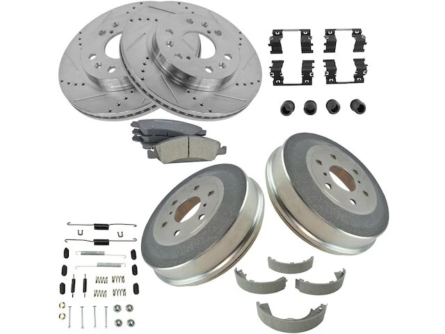 Package Contents: (2) Rear Brake Drums; (1) Rear Brake Shoe Set; (1) Rear Brake Hardware Kit; (1) Front Ceramic Brake Pad Set; (1) Front Brake Hardware Kit; (2) Front Performance Brake Rotors