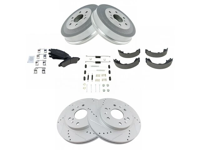 DIY Solutions – Rear Ceramic Brake Pads And Cross Drilled And Slotted Rotor Shoe Drum Kit – 6 Lug – 2009 – 2013 GMC Sierra 1500 – BFS02040