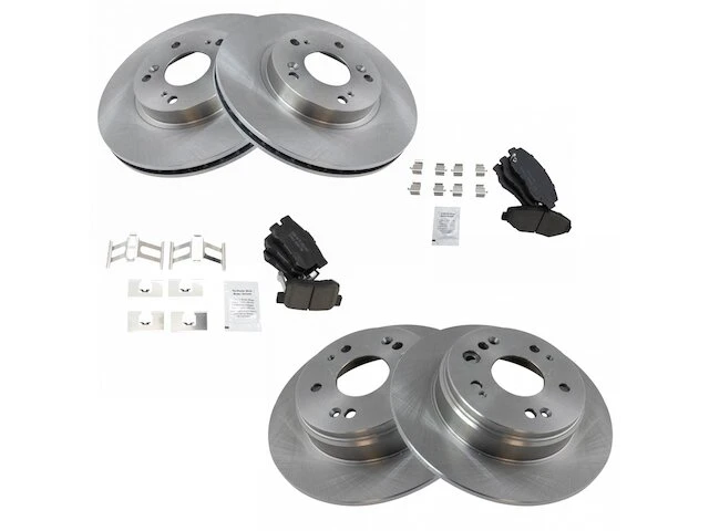 Package Contents: (2) Front Replacement Brake Rotors; (2) Rear Replacement Brake Rotors; (1) Front Ceramic Brake Pad Set; (1) Rear Ceramic Brake Pad Set; Brake Pad Contact Point Grease; Brake Pad Hardware