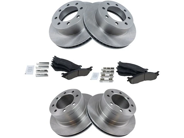 Package Contents: (2) Front Replacement Brake Rotors; (2) Rear Replacement Brake Rotors; (1) Front Ceramic Brake Pad Set; (1) Rear Ceramic Brake Pad Set; Brake Pad Contact Point Grease; Brake Pad Hardware