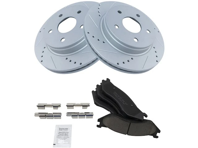 Package Contents: (2) Front Performance Brake Rotors; (1) Front Ceramic Brake Pad Set; Brake Pad Contact Point Grease; Brake Pad Hardware
