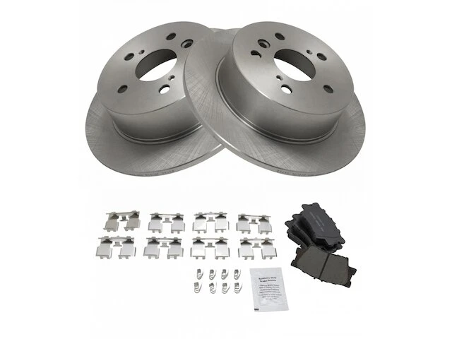 Package Contents: (2) Rear Replacement Brake Rotors; (1) Rear Ceramic Brake Pad Set; Brake Pad Contact Point Grease; Brake Pad Hardware